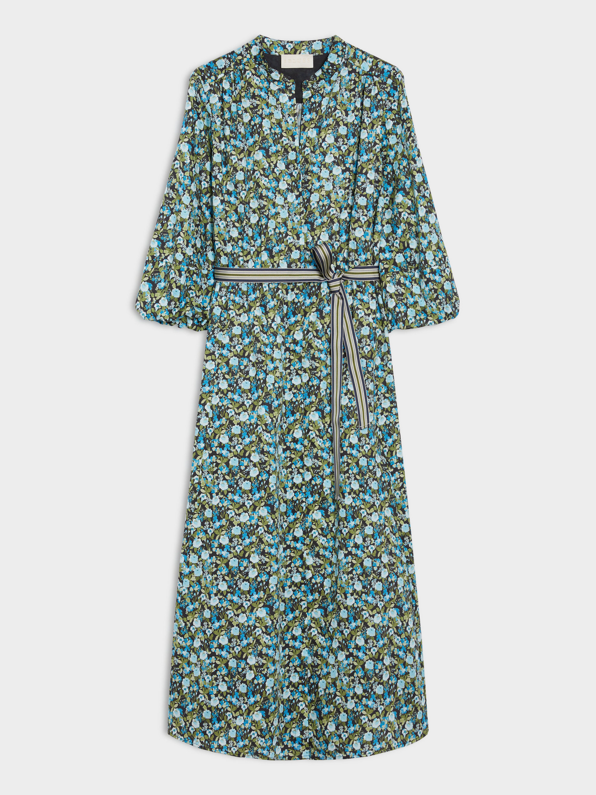 • Band collar, V-neckline and loose-fitting elbow-length sleeves with elasticated hems