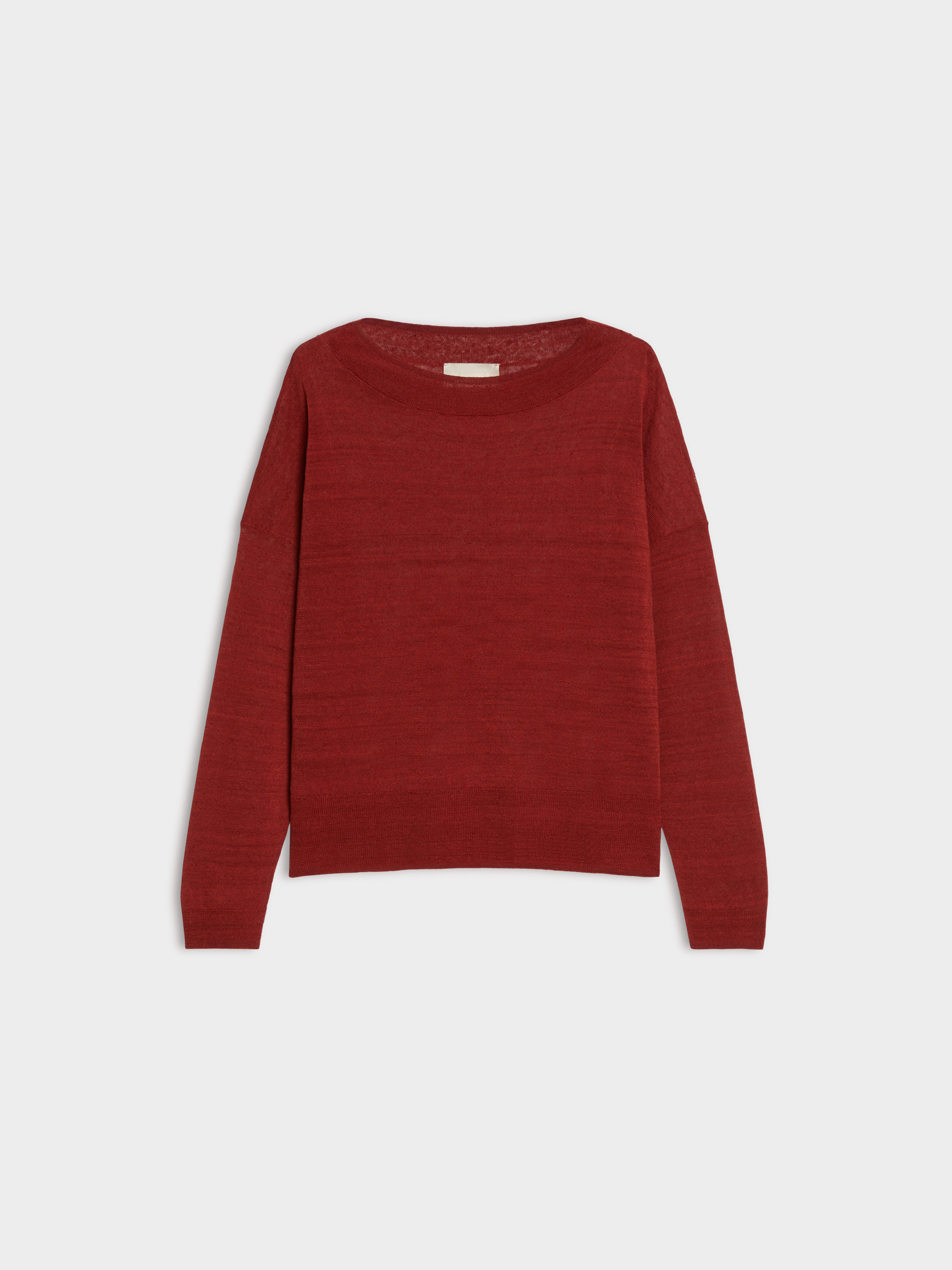 - Boat neckline and drop-shoulder long sleeves